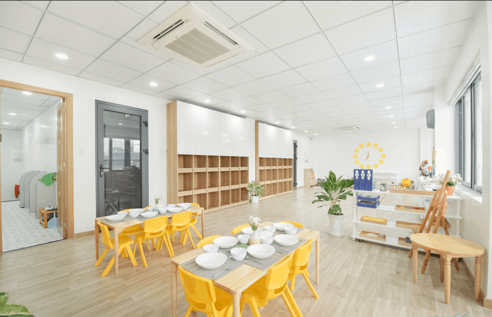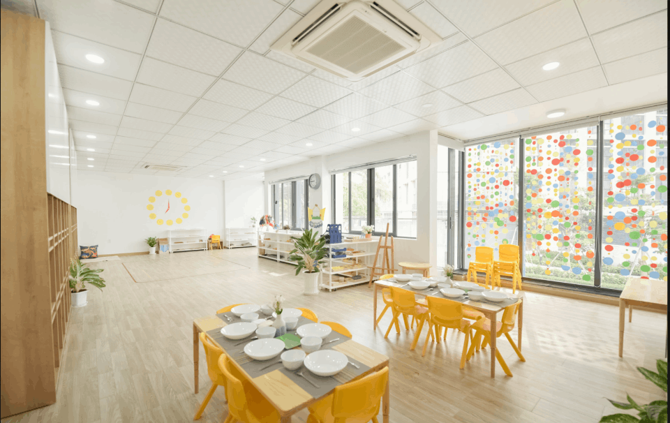 Các lớp học tại Be Home Preschool bố trí gọn gàng, khoa học, đầy đủ ánh sáng tự nhiên, có dụng cụ học tập Montessori riêng biệt.