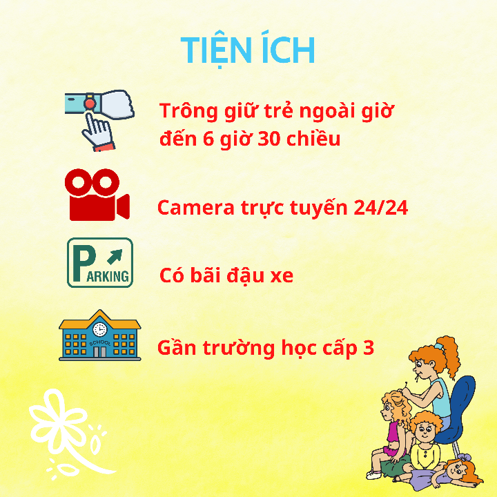 Hệ thống camera: giám sát 24/7 Phụ huynh có thể xem và quan sát quá trình học tập của con bất cứ lúc nào.