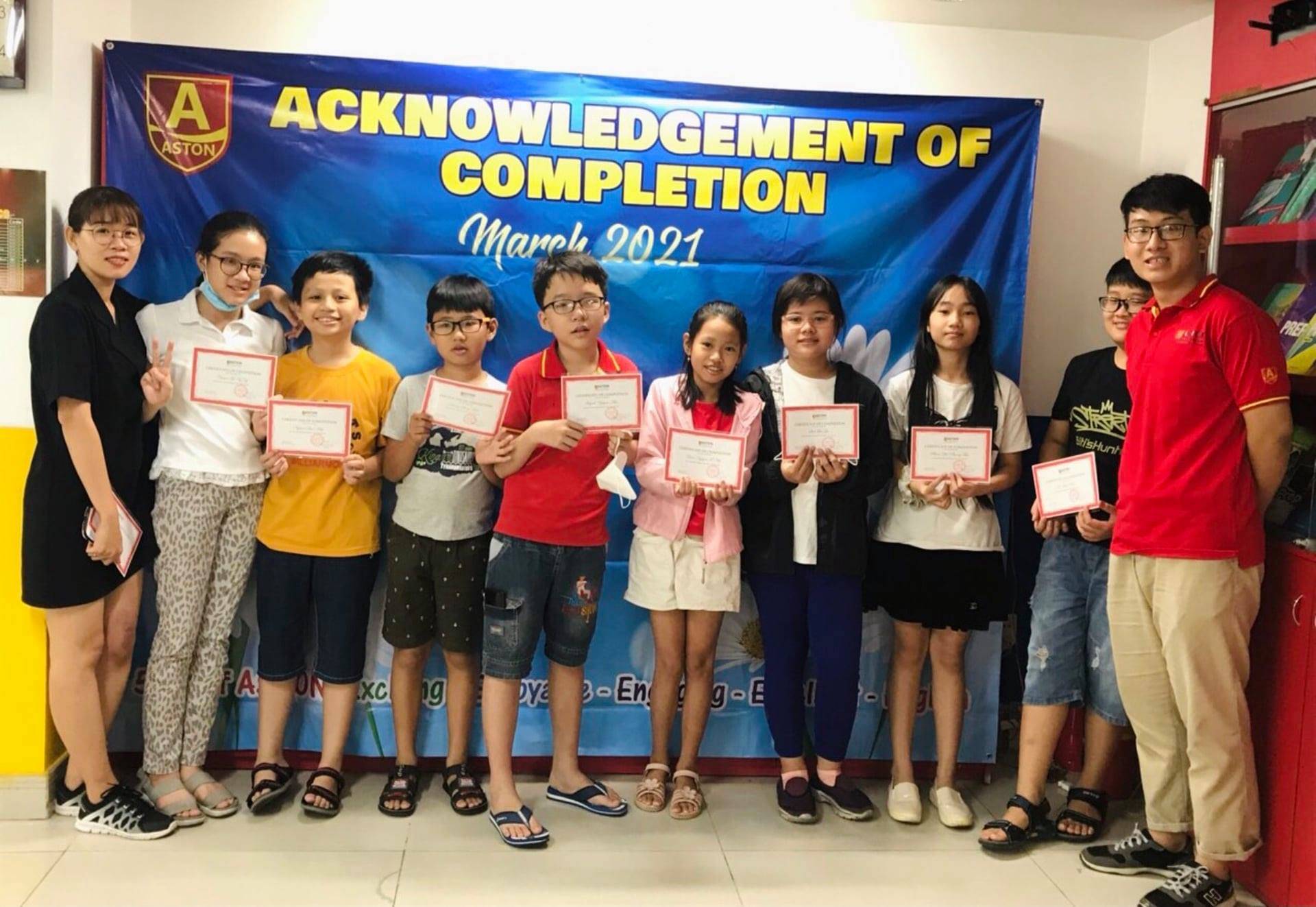- Trung tâm có các khóa học ngoại ngữ phù hợp theo từng độ tuổi của các bé, chương trình Anh văn Mẫu giáo thì dành cho những trẻ có độ tuổi từ 4 -6 tuổi, Chương trình Anh văn Thiếu nhi tại ASTON được thiết kế chuyên biệt dành cho trẻ từ 6 đến 10 tuổi, chương trình Anh văn Thiếu niên tại ASTON thì được thiết kế dành cho học viên từ 11 đến 16 tuổi.