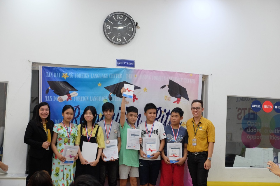 Tan Dai Duong English Academy đồng hành cùng British Council, IIG và IDP Việt Nam kết hợp đào tạo và cấp chứng chỉ TOEFL - IELTS - TOEIC có giá trị toàn cầu. Trung tâm chuyên đào tạo tiếng Anh đủ mọi lứa tuổi với các chương trình: tiếng Anh giao tiếp các cấp độ, tiếng Anh giao tiếp ngắn hạn cho doanh nhân và học viên muốn đi du lịch, tiếng Anh cho trẻ em từ 6 tuổi trở lên, ôn luyện thi IELTS, Pre-TOEIC, TOEIC...