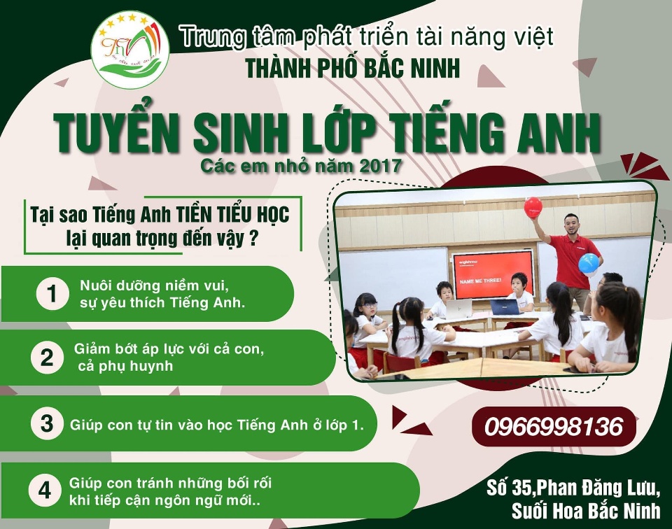 Trung Tâm Phát Triển Tài Năng Việt Thành Phố Bắc Ninh - Phan Đăng Lưu tuyển sinh các lớp: