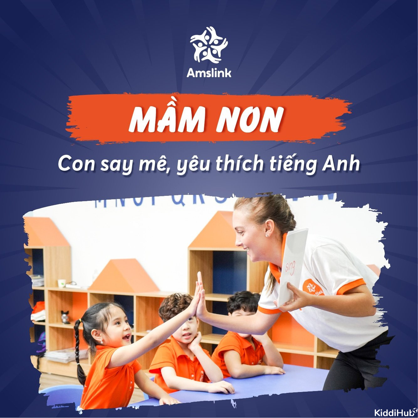 4 - 6 tuổi là giai đoạn các bé đặc biệt tò mò và mong muốn khám phá thế giới xung quanh. Khóa học tiếng Anh PreSchool tại Amslink gồm các hoạt động, trò chơi, câu chuyện, bài thơ bài hát theo chuỗi các sự kiện có nội dung gần gũi và dễ nhớ để bé làm quen với tiếng Anh một cách tự nhiên.