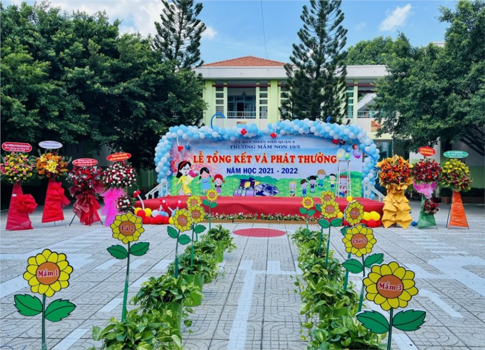 Trường Mầm Non 19/5 được thành lập theo Quyết định số 1361/QĐ-UB ngày 17 tháng 4 năm 1996 của Ủy ban nhân dân Quận 8; được Sở Giáo dục và Đào tạo Thành phố công nhận đạt chất lượng giáo dục từ năm 2015 theo Quyết định số 2805/QĐ-GDĐT-KTKĐCLGD ngày 11/6/2015, đến năm 2020 tiếp tục được công nhận đạt chất lượng giáo dục cấp độ 3 theo Quyết định số 2442-1/QĐ-GDĐT-KTKĐCLGD ngày 08/10/2020; được Ủy ban nhân dân Thành phố Hồ Chí Minh công nhận đạt chuẩn quốc gia mức độ 1 từ năm 2010 theo Quyết định số 1109/QĐ-UBND ngày 11/3/2010, đến năm 2020 được công nhận đạt chuẩn quốc gia mức độ 2 theo Quyết định số 4046/QĐ-UBND ngày 31/10/2020.