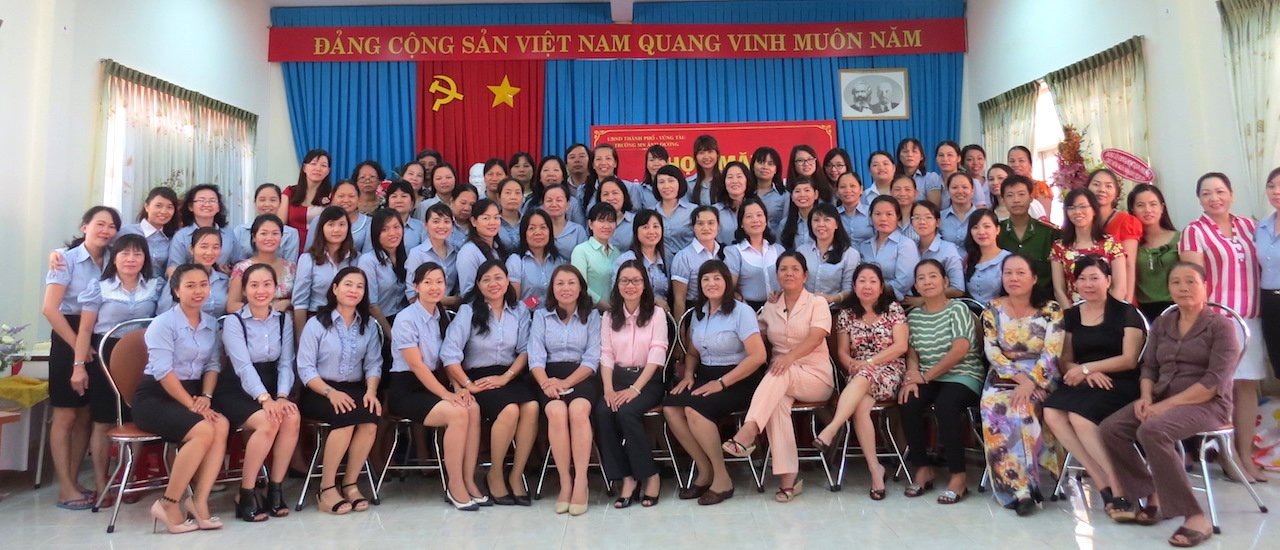 Tập thể cán bộ, giáo viên, nhân viên nhà trường: gồm 54 người. Trong đó BGH có: 3, giáo viên: 36, nhân viên: 15. Tập thể cán bộ, giáo viên, nhân viên nhà trường có truyền thống đoàn kết, gắn bó, giúp đỡ nhau trong công việc và trong cuộc sống. Đội ngũ nhà trường có 100% giáo viên đạt chuẩn từ trung cấp sư phạm trở lên, trong đó có 20/36 giáo viên có trình độ đại học và cao đẳng. 100% giáo viên yêu nghề, mến trẻ, tận tâm với công việc chăm sóc trẻ và có nhiều sáng tạo trong việc đổi mới phương pháp dạy trẻ mầm non.