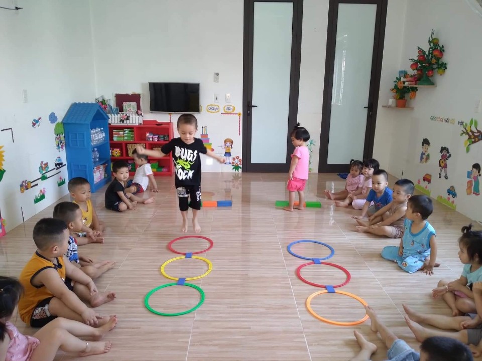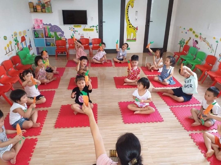 - Các lớp đều được trang bị: điều hòa, tivi, nóng lạnh, quạt, máy chiếu, giường ngủ (1 trẻ/giường), bàn học, bàn ăn.