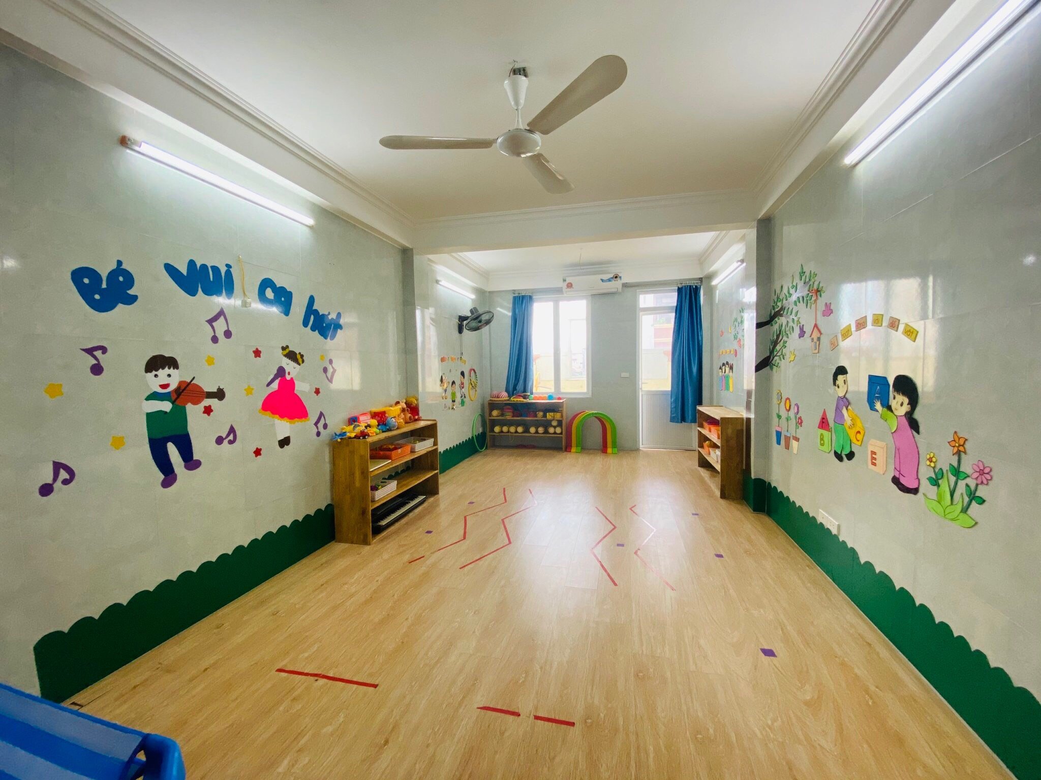 Cơ sở vật chất rộng, thoáng mát, hiện đại với đầy đủ trang thiết bị học tập chất lượng: phòng học rộng hơn 35m2 thoáng mát với đầy đủ ánh sáng và các phòng chức năng như: phòng thư viện, phòng y tế, phòng năng khiếu, khu sân chơi softplay...
