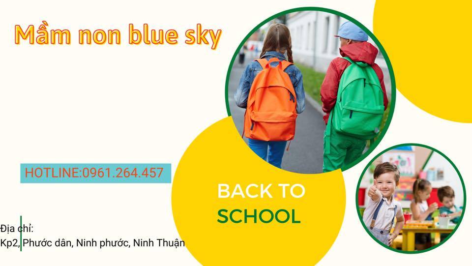 Trường Mầm Non Blue Sky - Phước Dân là trường mầm non có chất lượng tốt tại huyện Ninh Phước khi giáo viên luôn trú trọng tới con thơ, khiến con thấy thoải mái như ở nhà, cho con một không gian rộng lớn để thoải mái chơi đùa và luôn cập nhật đủ nội dung giáo dục trong quá trình trưởng thành của con. Đó là lý do mà Trường Mầm Non Blue Sky - Phước Dân luôn là một trong những sự lựa chọn mà kiddihub muốn gửi đến cho bạn.