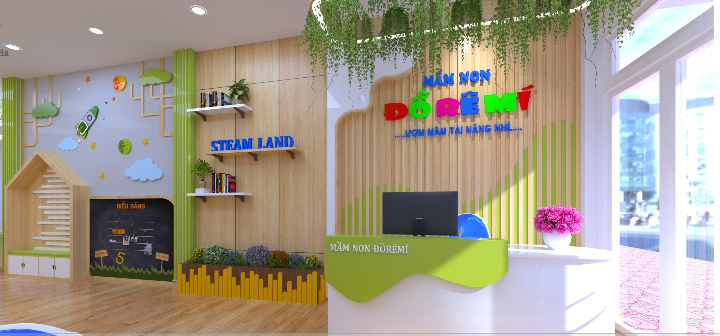 Trường Mầm non Đồ Rê Mí Tân Mai có tổng diện tích 450m2, gồm có 8 phòng học, một khu vui chơi trong nhà và thư viện.