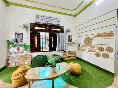 Sân chơi ngoài sân, sân chơi trong nhà đầy đủ đồ chơi cho trẻ.