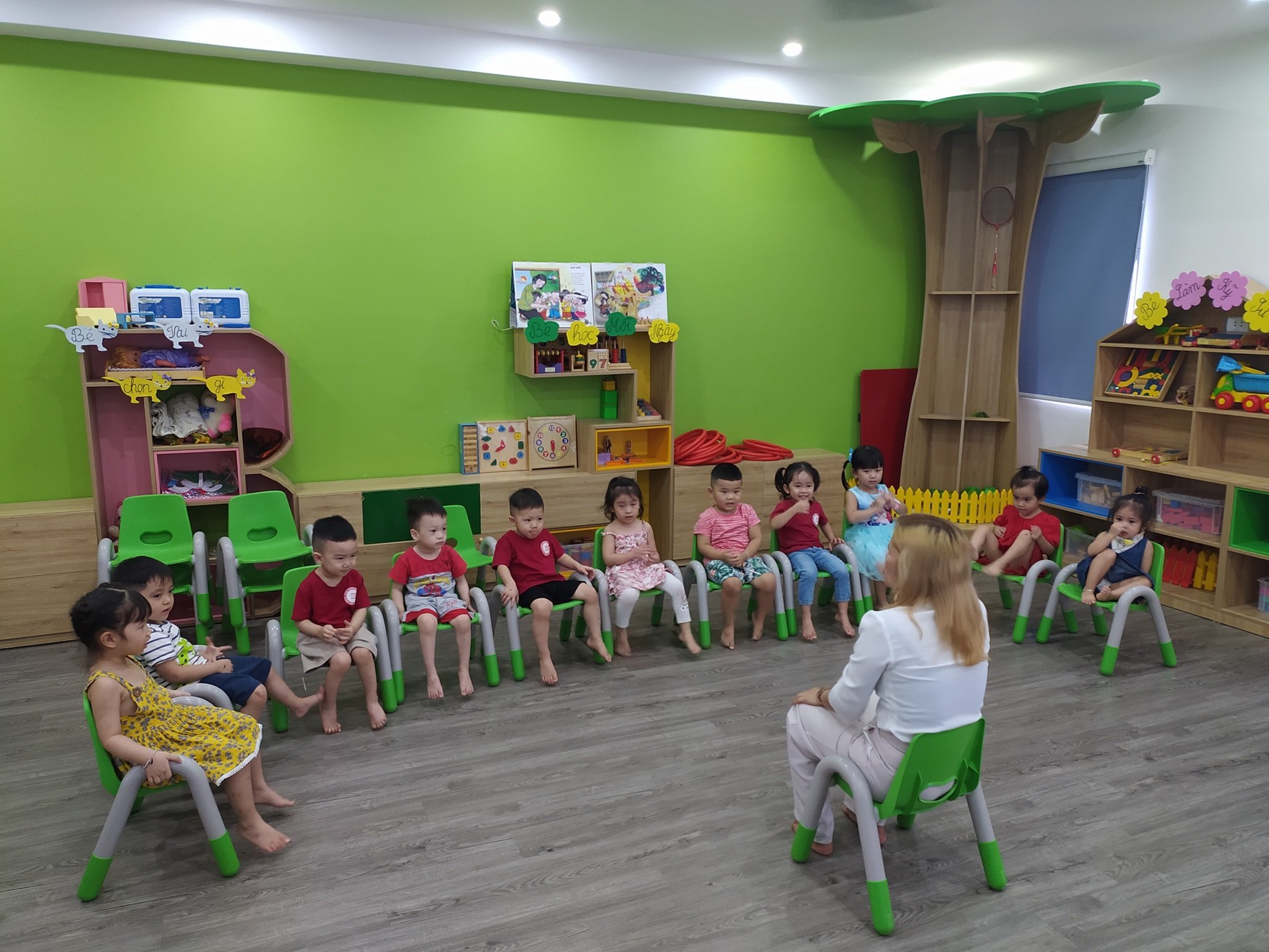 Các lớp đều trang bị đầy đủ, tivi, loa, điều hòa 2 chiều, quạt trần....