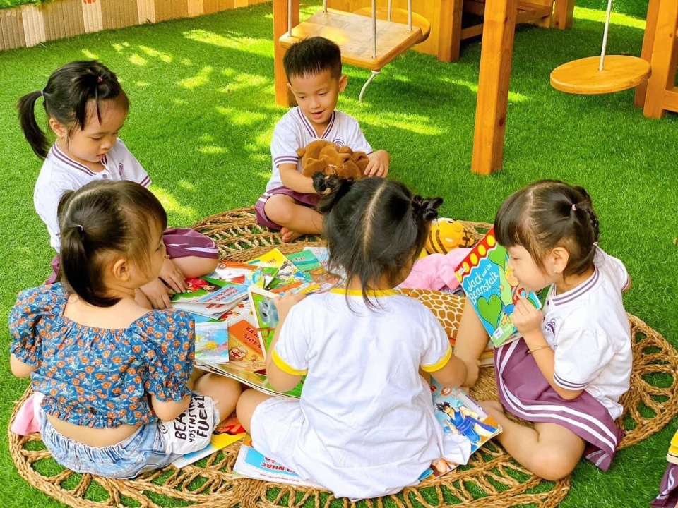 - Phòng học đầy đủ tiện nghi dùng cho học tập và sinh hoạt: góc chơi theo chủ đề, trang thiết bị dạy và học, tủ đựng chăn gối,…