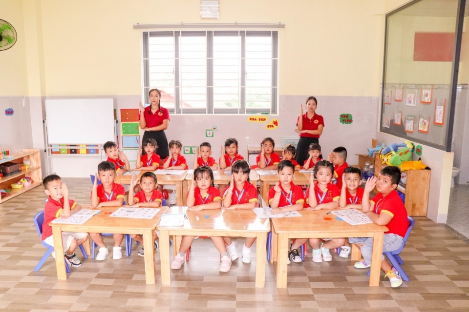 - Phòng học: 08 phòng dạy học diện tích dao động từ 40-45m2, nhà vệ sinh riêng.