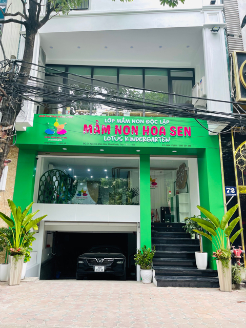 Trường Mầm non Hoa Sen (Lotus Kindergarten) - Nhân Chính tọa lạc tại 74 Ngõ 116 Nhân Hoà, Nhân Chính, ngay tại mặt đường, ô tô đỗ cửa thuận tiện đưa đón, với thiết kế rộng rãi: