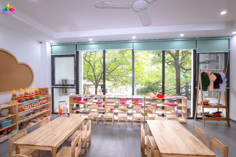 - 5 phòng học, mỗi phòng học từ 30-40m2, được thiết kế thoáng mát, hiện đại và an toàn với trẻ.