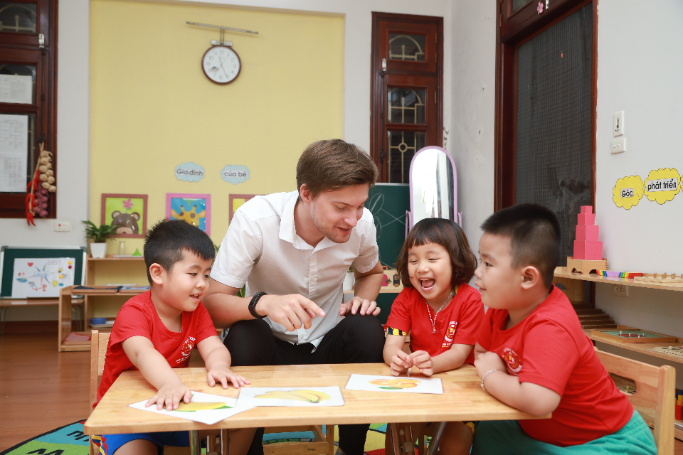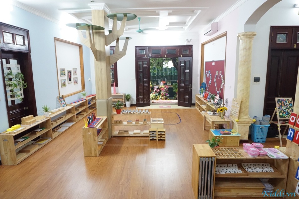 Các giáo cụ đều bằng chất liệu gỗ, tre tự nhiên thân thiện với môi trường không gây hại cho trẻ nhỏ. Ánh sáng thiên nhiên được tận dụng tối đa với hệ thống cửa sổ và ban công dưới bóng cây xanh mát