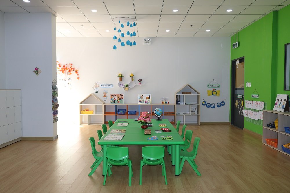 - Phòng Anh văn; Trẻ được học với giáo viên nước ngoài với các môn học như STEM, ngữ âm, từ vựng, ... với các học cụ thiết kế riêng phục vụ cho từng tiết học giúp trẻ tiếp thu nhanh và hiệu quả hơn.
