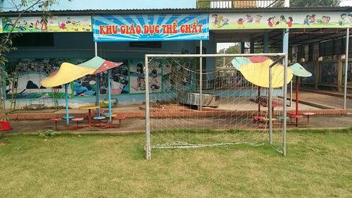 Tổng diện tích là 8525m2, trong đó diện tích phòng học là 1.397 m2, diện tích sân chơi là 4.300 m2. Khoảng cách từ trường tới các thôn khu từ 100m đến 200m thuận tiện cho việc đưa đón trẻ đến trường. Trường xây dựng gồm 16 phòng học và các phòng chức năng cùng với hệ thống trang thiết bị đồng bộ hiện đại đáp ứng cho công tác chăm sóc giáo dục trẻ theo yêu cầu.