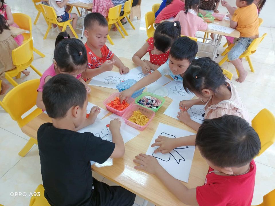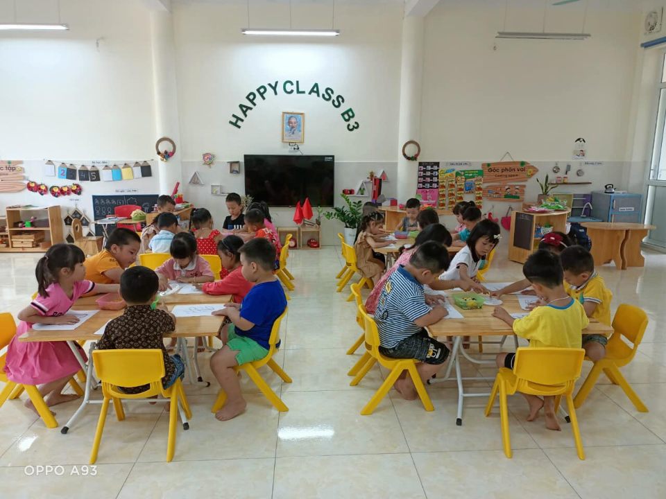 Để tạo điều kiện cho tất cả trẻ có thể “chơi mà học, học bằng chơi”, phù hợp với thực tế của nhà trường. Các khu vực trong lớp được thiết kế theo hướng tận dụng các không gian để cho trẻ hoạt động đảm bảo phù hợp, linh hoạt, đa dạng phong phú, tạo điều kiện cho các con dễ dàng tự lựa chọn và sử dụng đồ dùng, đồ chơi để thực hành, trải nghiệm. Ngoài việc tạo môi trường tại các góc cho trẻ hoạt động, các cô luôn chú ý đến việc tạo không gian sống xanh của thiên nhiên cỏ cây, hoa lá tạo cho trẻ được hòa mình được sống an toàn, được tiếp xúc gần gũi với thiên nhiên.