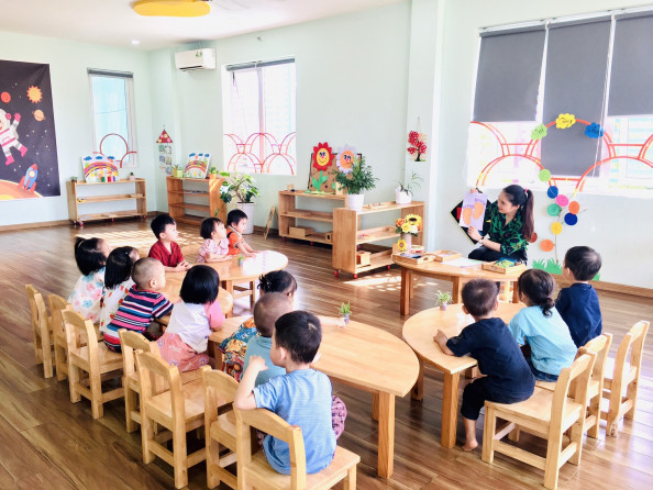 - Tất các các khối lớp đều được trang bị giáo cụ bằng gỗ tự nhiên, không gian đọc sách thân thiện.