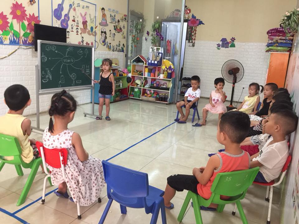 Mỗi lớp chỉ nhận từ 15 đến 20 trẻ, từ 2-3 giáo viên chính; các bộ môn thể thao, năng khiếu, Tiếng Anh gv riêng. Trẻ ham học, có nhiều kiến thức về đọc, viết, toán, kỹ năng sống để vững vàng lên lớp 1. 7. Các lớp có nhóm riêng. Hàng tuần các cô gửi khung chương trình, ảnh bé học- vui chơi, thực đơn, thông báo.... cho bố mẹ tiện theo dõi