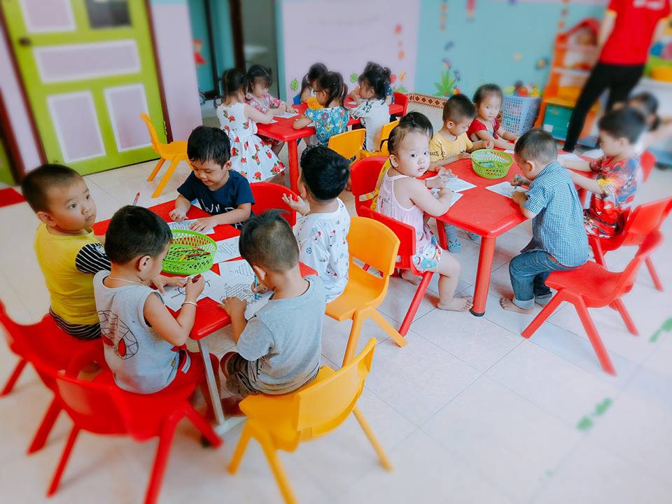 Phòng học thoáng mát có trang bị camera kết nối giữa gia đình và nhà trường, có trang bị phòng chức năng , phòng ăn riêng biệt , được học tập với giáo viên Anh Ngữ trong và ngoài nước .