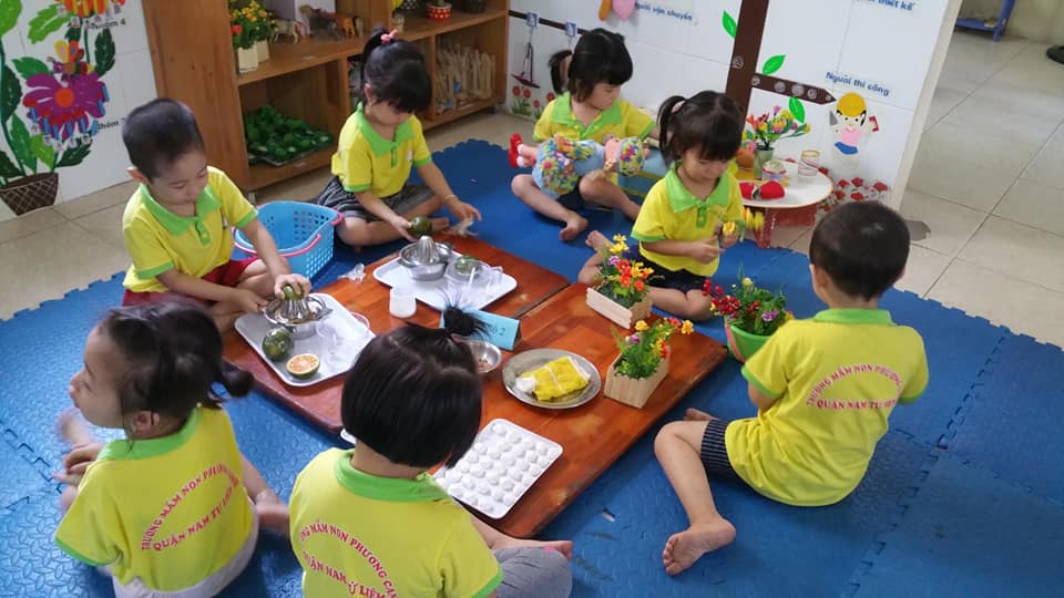 - Các góc thiên nhiên với nhiều hình thức phong phú, có cây xanh, cây cảnh, đồ chơi cát nước để trẻ được khám phá thiên nhiên…