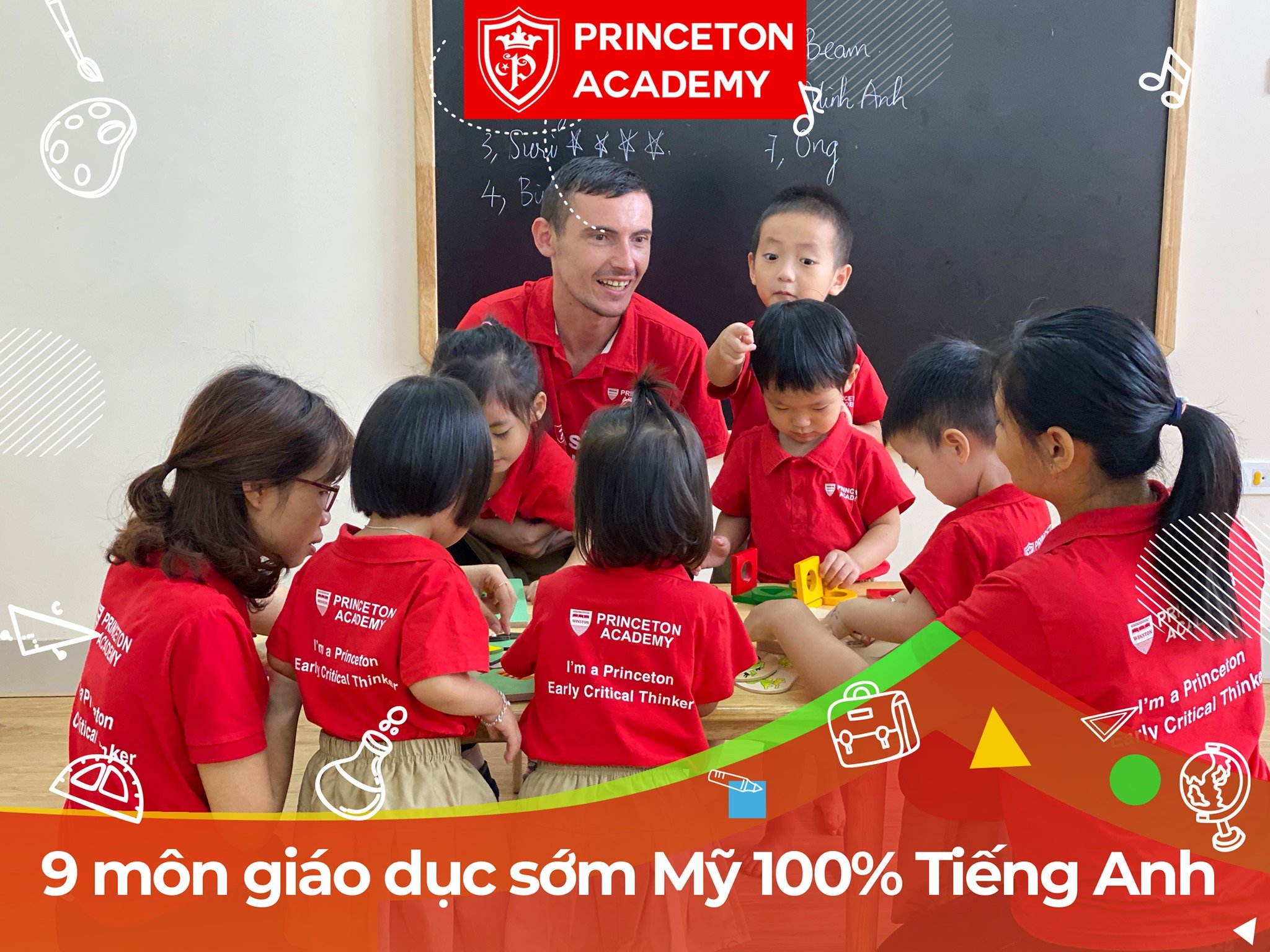 Chương trình học Trường Mầm non Princeton Academy - TimesCity gồm 9 môn giáo dục sớm dạy bằng 100% tiếng Anh hàng đầu của Mỹ, được chứng minh có khả năng phát triển tư duy tuyệt vời cho trẻ: