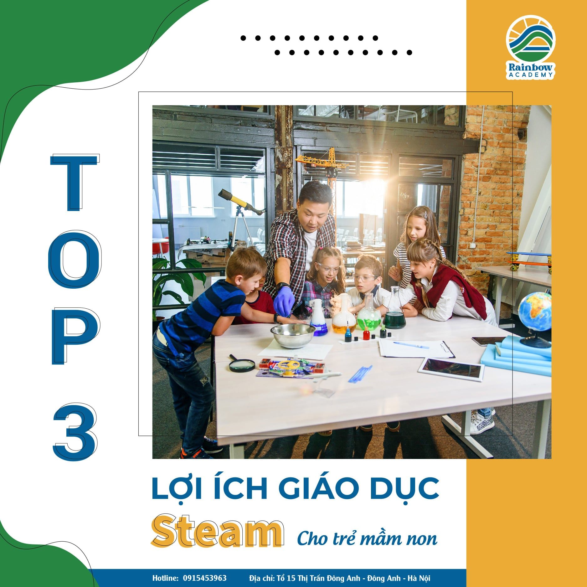 Lớp học STEAM được áp dụng đầu tiên tại mầm non Rainbow Academy khu vực Đông Anh. Với mong muốn mang đến môi trường học tập và phát triển toàn diện cho các con về năng lực tư duy - nghệ thuật