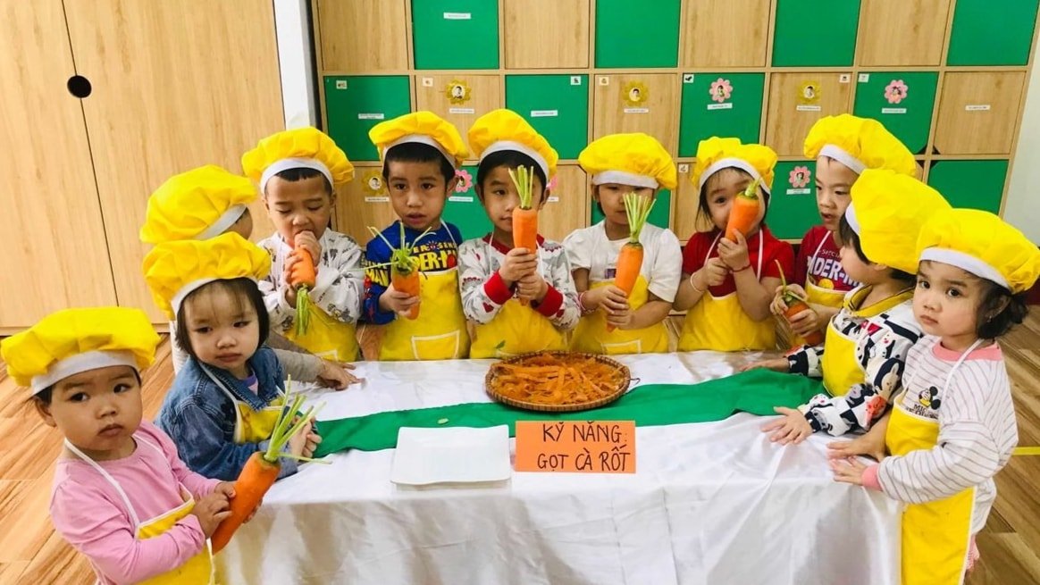 Sakurakindergarten đã áp dụng thực đơn đầy đủ các nhóm chất dinh dưỡng, thực phẩm sạch, đảm bảo an toàn.
