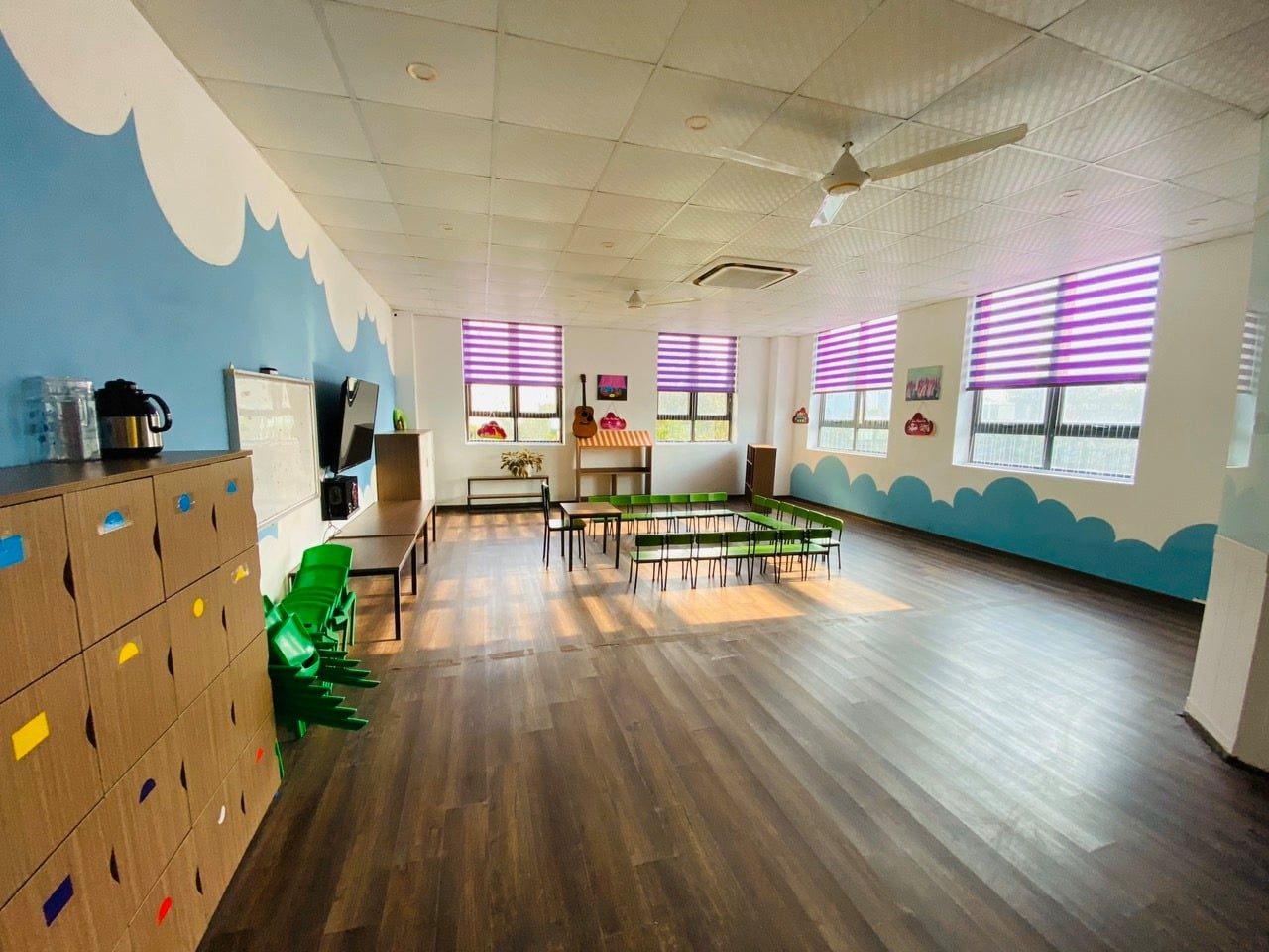 - Phòng học rộng rãi, thoáng mát