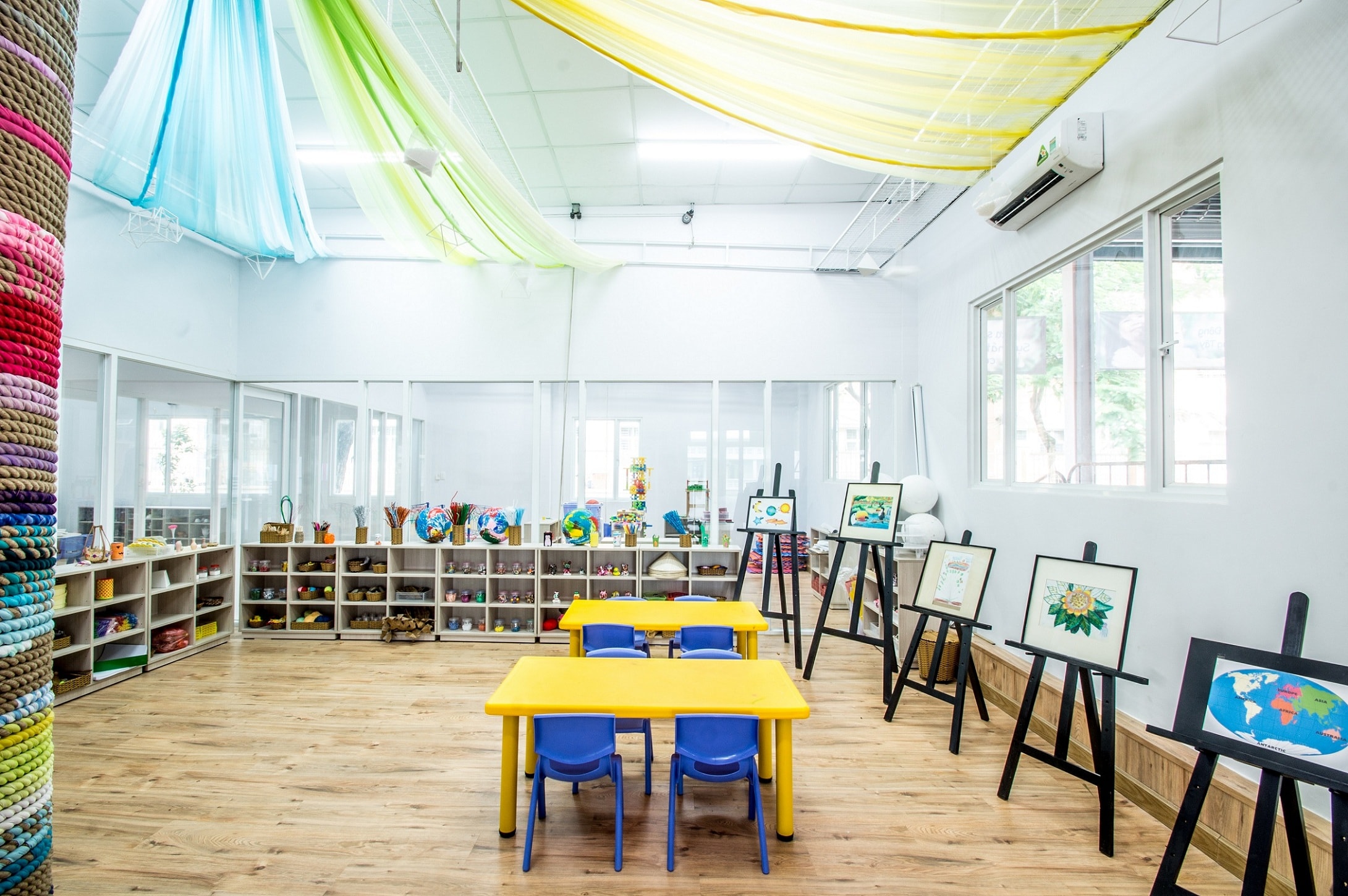 Phòng học rộng rãi, thông thoáng, được thiết kế tươi tắn, ánh sáng thông thoáng tự nhiên tạo môi trường lớp học lành mạnh, thân thiện giúp học sinh thỏa sức phát triển tài năng toàn diện là niềm vui của trường Tesla.