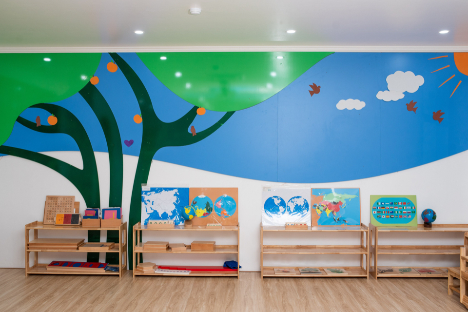 Phòng học của STAR ACADEMY rộng rãi, trang thiết bị hiện đại, với thiết kế đẹp mắt, tạo không khí mong muốn đến trường, đảm bảo an toàn cho bé, đầy đủ giáo cụ Montessori chất lượng cao.