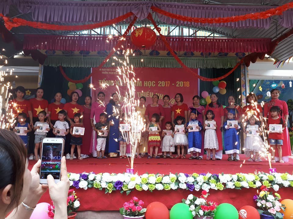 Trường của chúng tôi có 26 đồng chí CBGV – CNV. Trong đó có 15 đồng chí đạt trình độ trên chuẩn chiếm tỷ lệ 58%, số còn lại đang theo học nâng chuẩn tại trung tâm giáo dục thường xuyên của tỉnh. Hiện nay chúng tôi đang quản lý 325 cháu trên 10 lớp của trường. Trong những năm gần đây nhà trường đã không ngừng phấn đấu vươn lên trong sự nghiệp chăm sóc giáo dục trẻ và đã đạt những kết quả đáng khích lệ:
