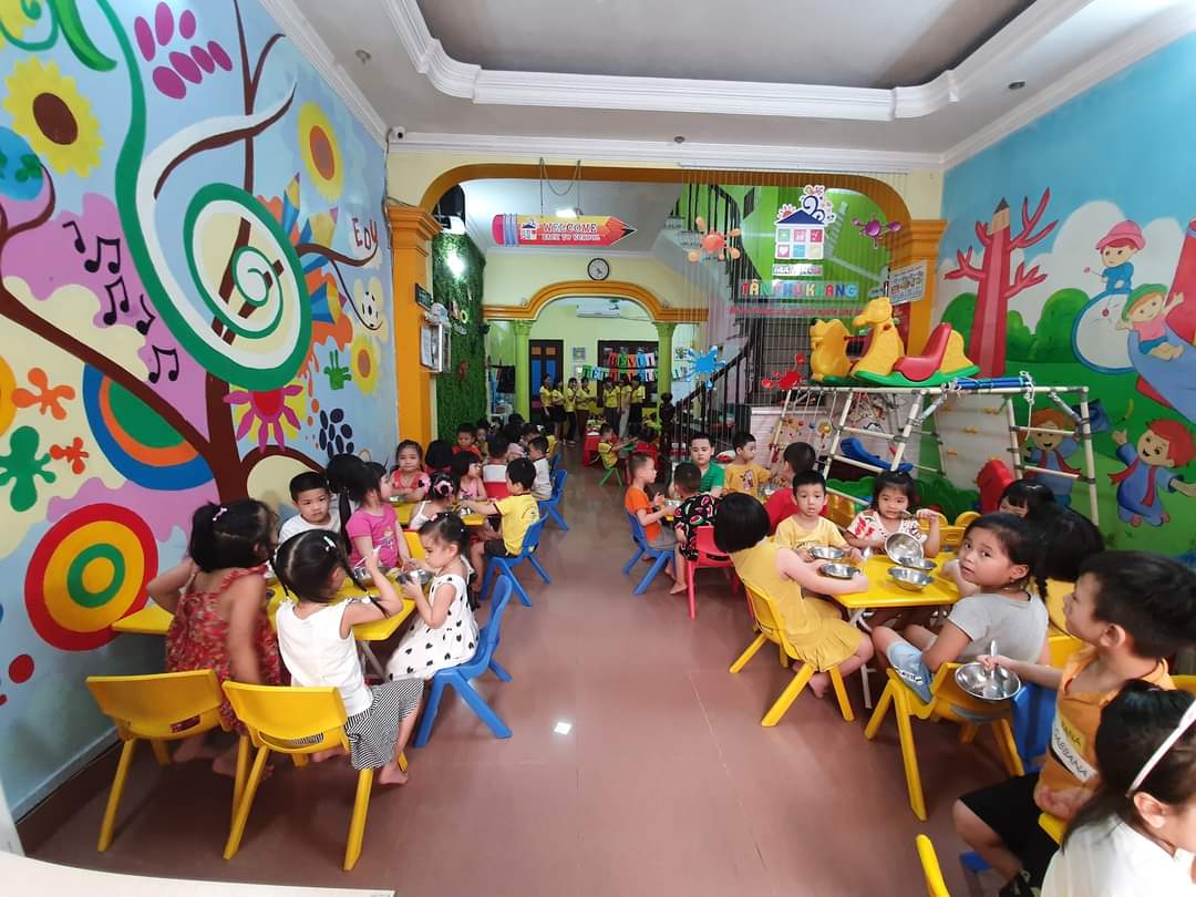 Trường mầm non Tân Phú Khang có phòng học rộng rãi và thoáng mát, có khu vui chơi riêng biệt.