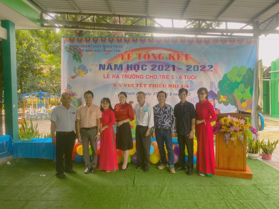 Trường Mầm Non Thanh An thuộc công ty cao su Dầu Tiếng, đến tháng 8 năm 2016 trường được xác nhập qua huyện quản lý và chuyển đổi tên trường thành trường Mầm non Thanh Tân. Trường mầm non Thanh Tân tọa lạc ấp Thanh Tân, xã Thanh An, huyện Dầu Tiếng, tỉnh Bình Dương. Với tổng diện tích là 5.422.1m2, trong đó diện tích phòng học là 173,07 m2. Trường đặt gần nông trường cao su Thanh An, trước mặt trường là đường được trãi nhựa bê tông hóa nên rất thuận tiện cho việc phụ huynh đưa đón trẻ đến trường. Năm học 2017-2018 trường được đầu tư xây dựng thêm nhà để xe, làm máy che trước các hiên lớp, cải tạo lại các công trình vệ sinh, sơn sữa tường mới, cải tạo phòng chức năng. Năm học 2019-2020 trường được xây dựng thêm phòng thể chất, phòng âm nhạc, phòng bảo vệ, xây mới lại hàng rào… theo hướng trường Mầm non đạt chuẩn Quốc gia. Lớp học sạch sẽ, thoáng mát, có trang thiết bị tương đối đầy đủ đồ dùng đồ chơi bên trong, đồ chơi ngoài trời.