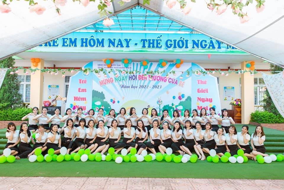 Trường được xây dựng tại địa điểm trung tâm Thị trấn Quốc Oai. Tổng diện tích đất toàn trường hiện nay là 6.228 m2, trong đó diện tích phòng học 1.260 m2, diện tích sân chơi - vườn là 4.329,5 m2. Trường có 20 phòng học cao tầng, rộng rãi, khang trang. Với tổng số 488 cháu đến trường được phân chia thành các khối lớp 2 tuổi, 3 tuổi, 4 tuổi và 5 tuổi. Các phòng học được trang bị đầy đủ các điều kiện và trang thiết bị, đồ chơi hiện đại đáp ứng tốt yêu cầu đổi mới và nâng cao chất lượng giáo dục toàn diện, đáp ứng tốt điều kiện giảng dạy và học tập cho giáo viên và trẻ.