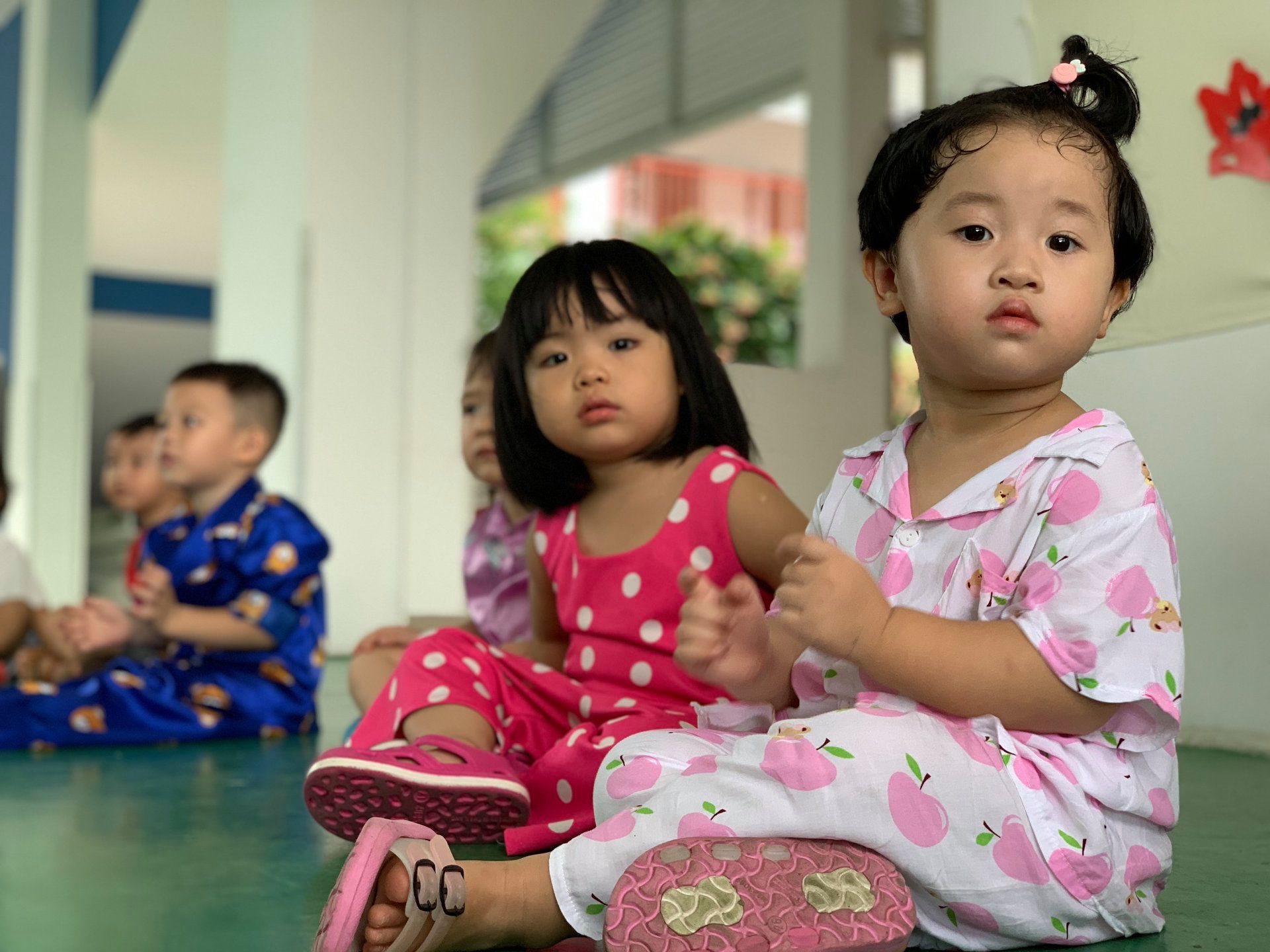 Mỗi phòng học có khu vực vệ sinh liền kề và dãy hành lang đệm giúp giảm bớt ánh nắng trực tiếp mà vẫn có độ sáng chuẩn. Các lớp đều được trang bị hiện đại với máy lạnh, hệ thống đèn, quạt, bảng thông minh và nhiều thiết bị dạy – học tiên tiến. Bên trong mỗi phòng đều được lót sàn gỗ nhưa, giúp bé giảm đau khi té ngã.