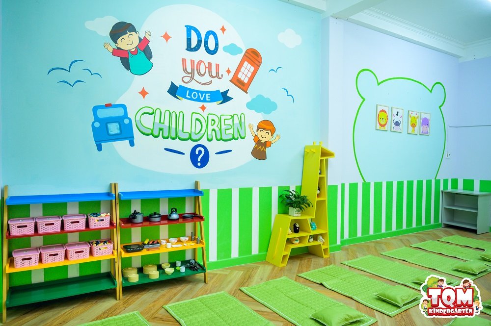 Trường mầm non TQM có 5 phòng học, 2 phòng rộng 35m2 và 3 phòng 22m2, khu vui chơi, phòng tập Aerobic, nhảy múa