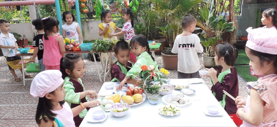- Có đầy đủ các loại đồ chơi vận động ngoài trời và các phương tiện cho trẻ hoạt động ngoài trời
