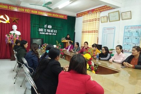 100% cán bộ giáo viên có trình độ Trung cấp trở lên. Trong đó, 85% cán bộ giáo viên có bằng Đại học, 15% cán bộ giáo viên đang theo học Đại học.