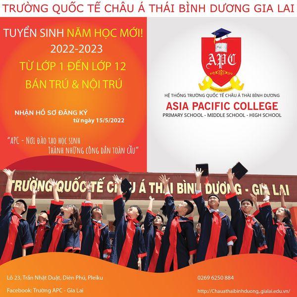 Trường Quốc Tế Châu Á Thái Bình Dương ( APC) là ngôi trường đã được đầu tư trên 100 tỷ đồng, xây dựng trên diện tích 11,3ha với cơ sở vật chất, trang thiết bị hoàn thiện, khang trang và hiện đại thuộc loại hàng đầu trong cả nước. Trường có 2 khu nội trú tiện nghi phục vụ cho học sinh, nhà nghỉ bán trú buổi trưa trang bị mỗi em một giường ngủ. Bếp ăn công nghiệp trang bị hiện đại, đảm bảo chất lượng, vệ sinh an toàn thực phẩm. Cơ sở vật chất cho hoạt động thể dục thể thao với 2 sân bóng đá mini cỏ nhân tạo, bể bơi trong nhà theo tiêu chuẩn quốc gia, nhà thi đấu đa năng, sân điền kinh…đảm bảo phục vụ tốt cho nhu cầu rèn luyện thể chất của học sinh…