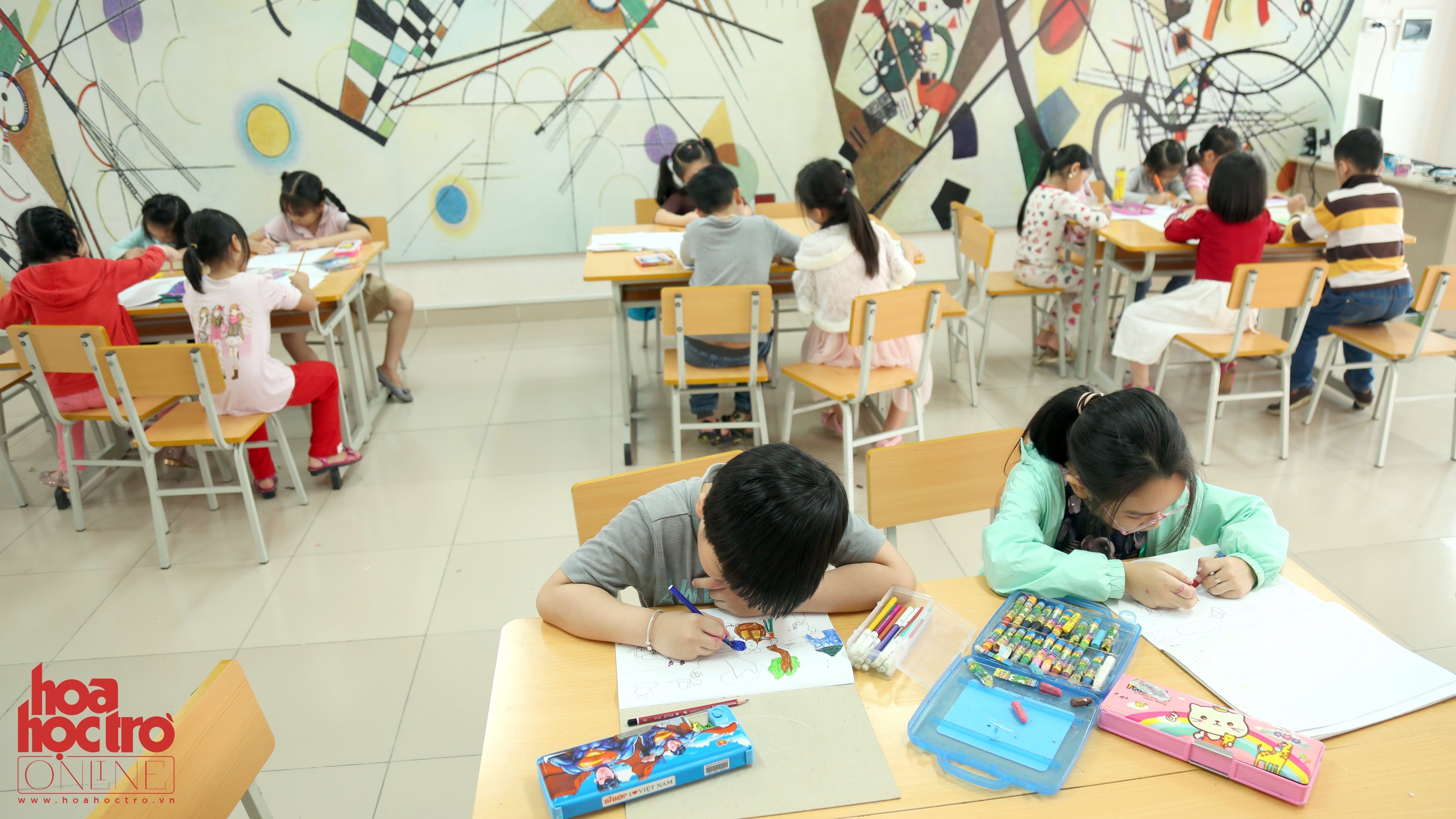 Đặc biệt, các thầy cô còn hướng dẫn TLKers thể hiện cảm xúc, suy nghĩ của mình không cần qua ngôn ngữ. Tranh vẽ, bút màu, âm nhạc… chính là cách mà tween Thăng Long Kidsmart bày tỏ cá tính của riêng mình.