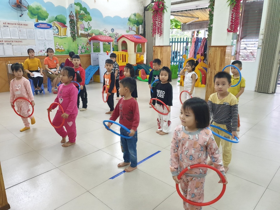 "sáng đưa bé đi học thấy cô giáo đón tận tình, dỗ dành, rất mến trẻ. Chiều nào mình đi làm về muôn chút cũng yên tâm là con có các cô trông cẩn thận"