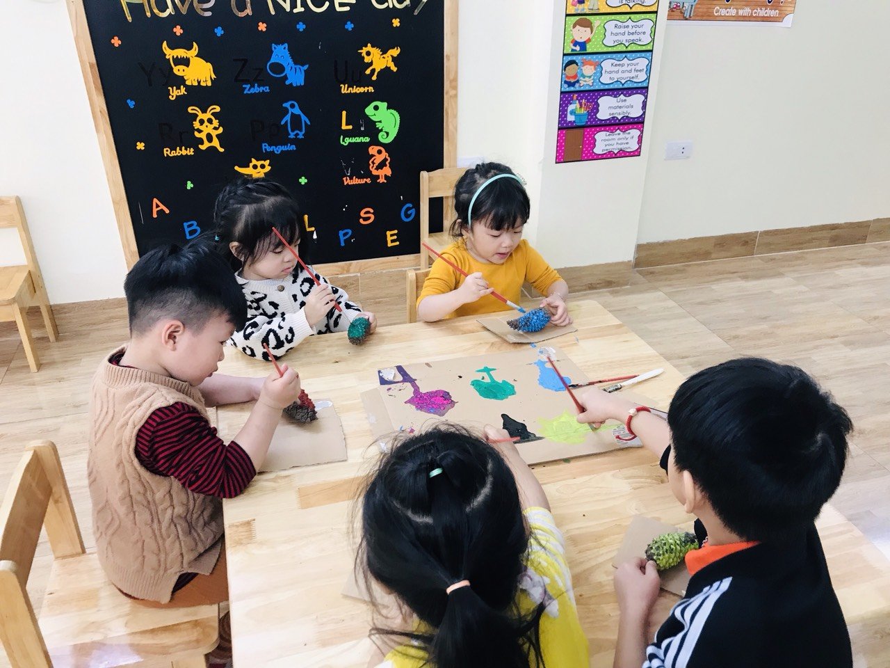 "Môi trường thân thiện ,Không gian phòng học rộng, có lót sàn gỗ,có camera mình rất yên tâm."