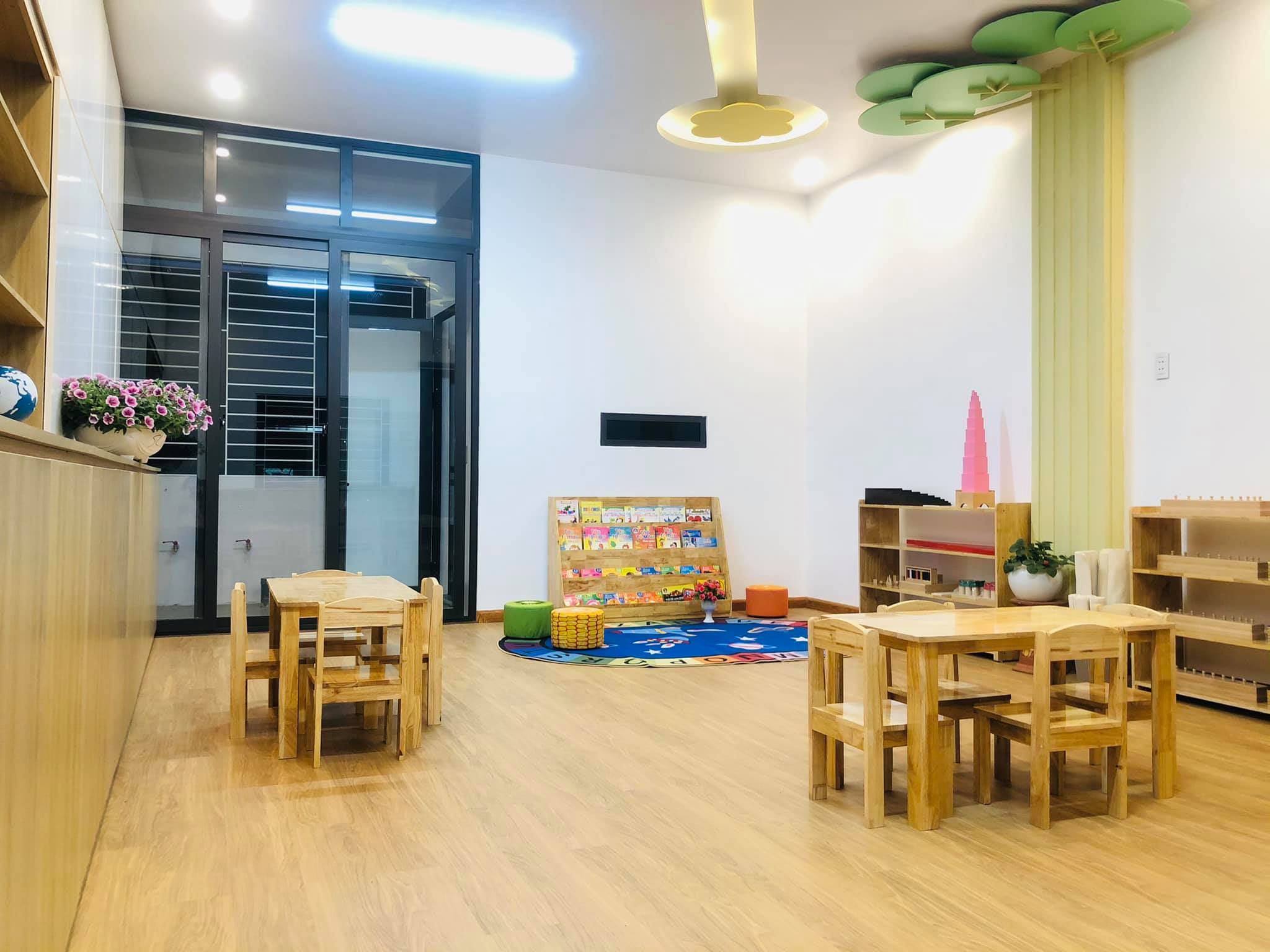 "Không gian phòng học rộng rãi, sàn lót gỗ, cơ sở vật chất rất tốt. phương pháp dạy rất sáng tạo và năng động. Thực đơn đa dạng phong phú, bé mình ăn nhanh và giỏi hơn ở nhà!"