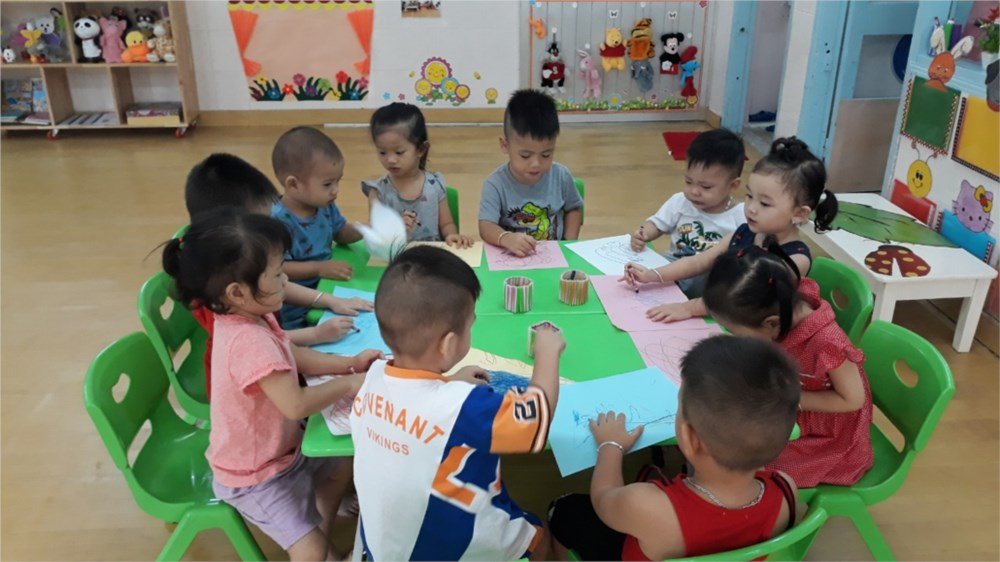 "Giáo trình Ok , các con được học các chương trình bản quyền như : xưởng mô hình , go kids, chương trình Tiếng Anh Budding Bean. Các cô tận tâm chăm sóc các con chu đáo"