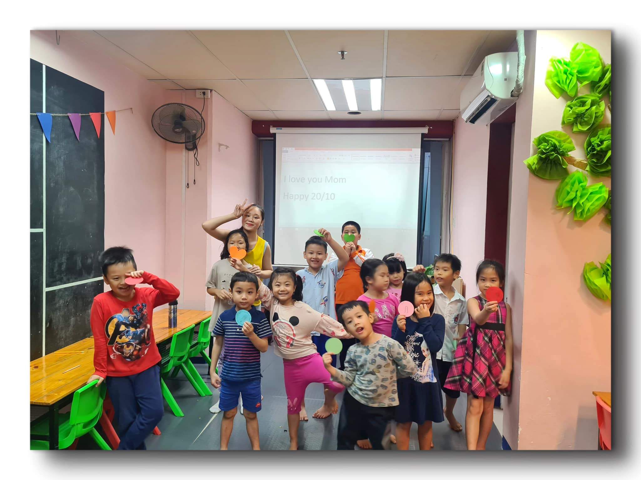 "Phụ huynh nào đang có nhu cầu học tiếng Anh thì nên thử qua trung tâm này nhé. Học thử k đăng ký cũng k sao cả, các cô nhiệt tình vô cùng luôn, con nhà mk nhút nhát mà học thử xong về suốt ngày đòi đi học tiếng Anh"